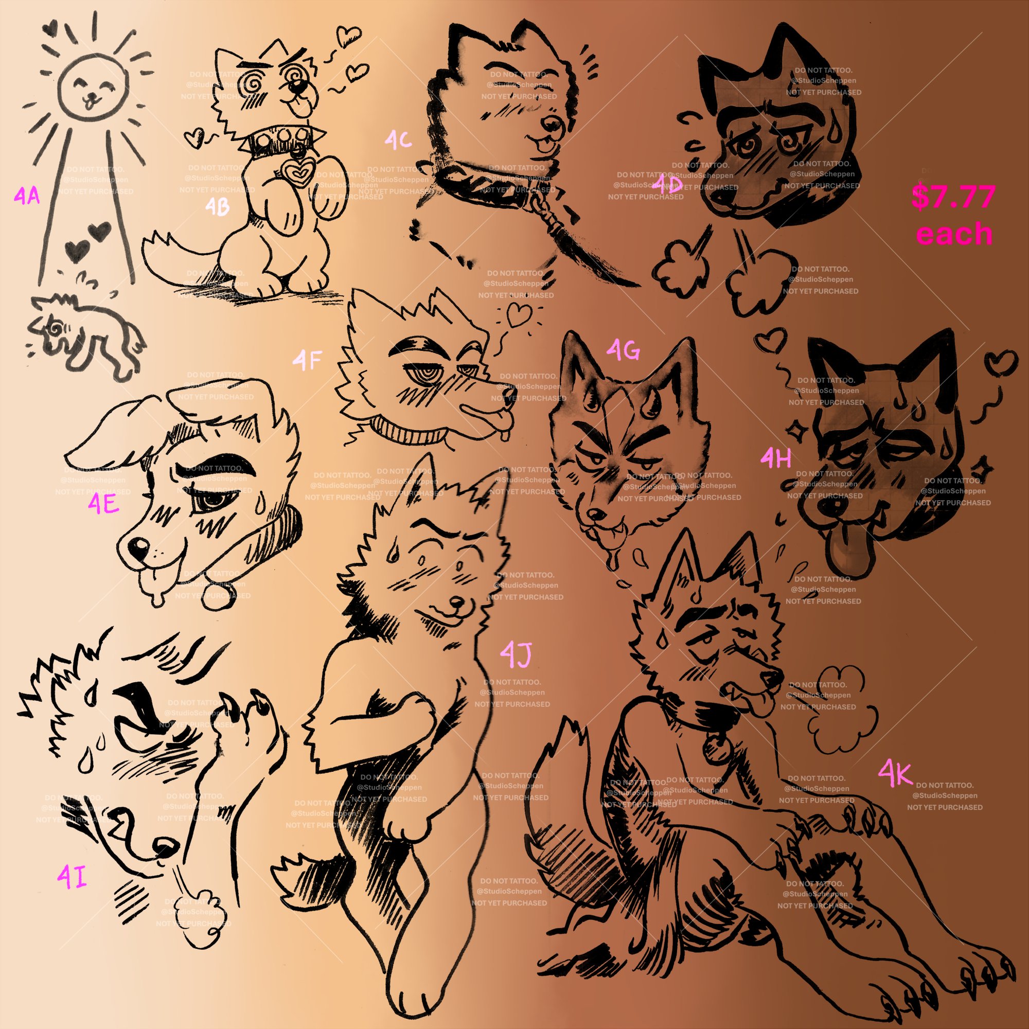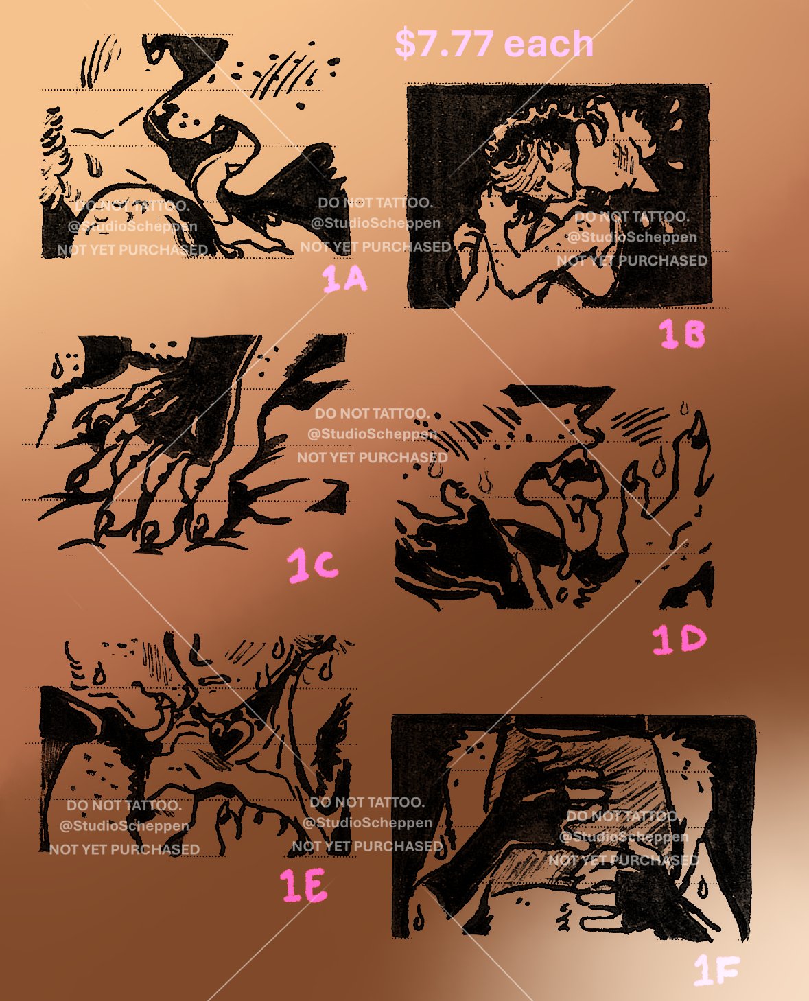 ❗ Note the prices and number-letter codes listed for your tattoo listed on each flash sheet. When you purchase your tattoo flash, leave these label(s) in the CUSTOMER NOTES section at checkout. I will then e-mail the files to your e-mail used at checkout (be sure to check spam folders!)